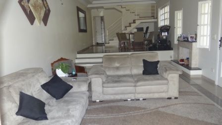 Sala ampla 2 ambientes avarandada, sala de jantar, lavabo, cozinha, lavanderia, depend. para empregada com quarto e WC, 4 dorms. amplos, (3 suítes), soton, quintal, 6 vagas com depósito. Portão eletrônico, interfone.