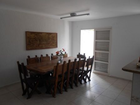 3 dormitórios (1 Suíte), cozinha americana, sala com mezanino (lareira e varanda), estúdio (com acústica), churrasqueira, forno de pizza, fogão a lenha, piscina (azulejos), telhado com 7 aguadas, telhas de concreto, ducha, canil duplex, salão de festa (com banheiro, cozinha e sacada), 3 banheiros, Lavanderia (2 Tanques), jardins, garagem fechada para 3 carros com portão automático, porteiro eletrônico, visores de água e luz para leituras externa, etc. AT 253 m² / AC 280 m². Documentação e Impostos OK.
